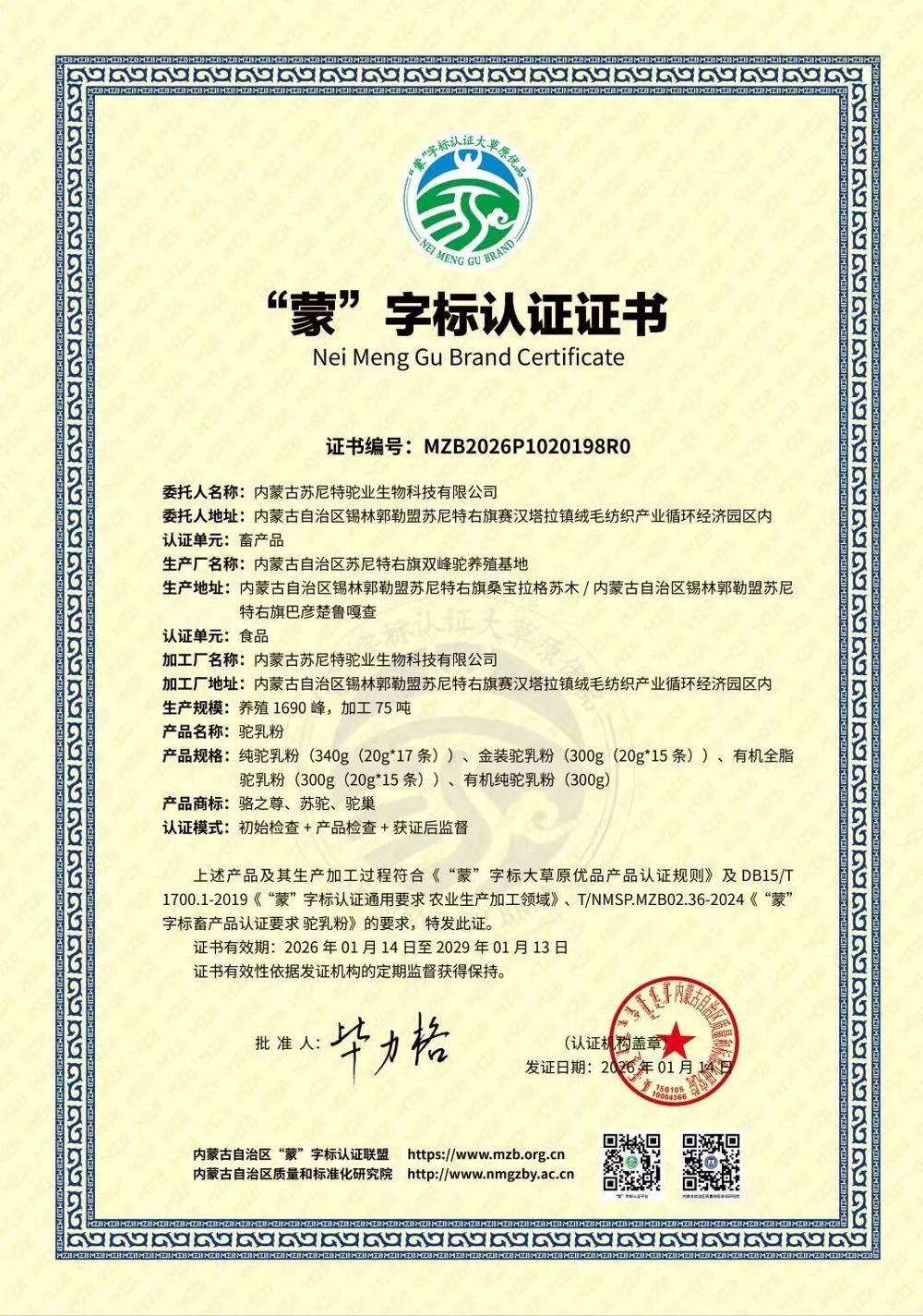 “蒙”字标加冕!苏尼特驼乳品质启新程