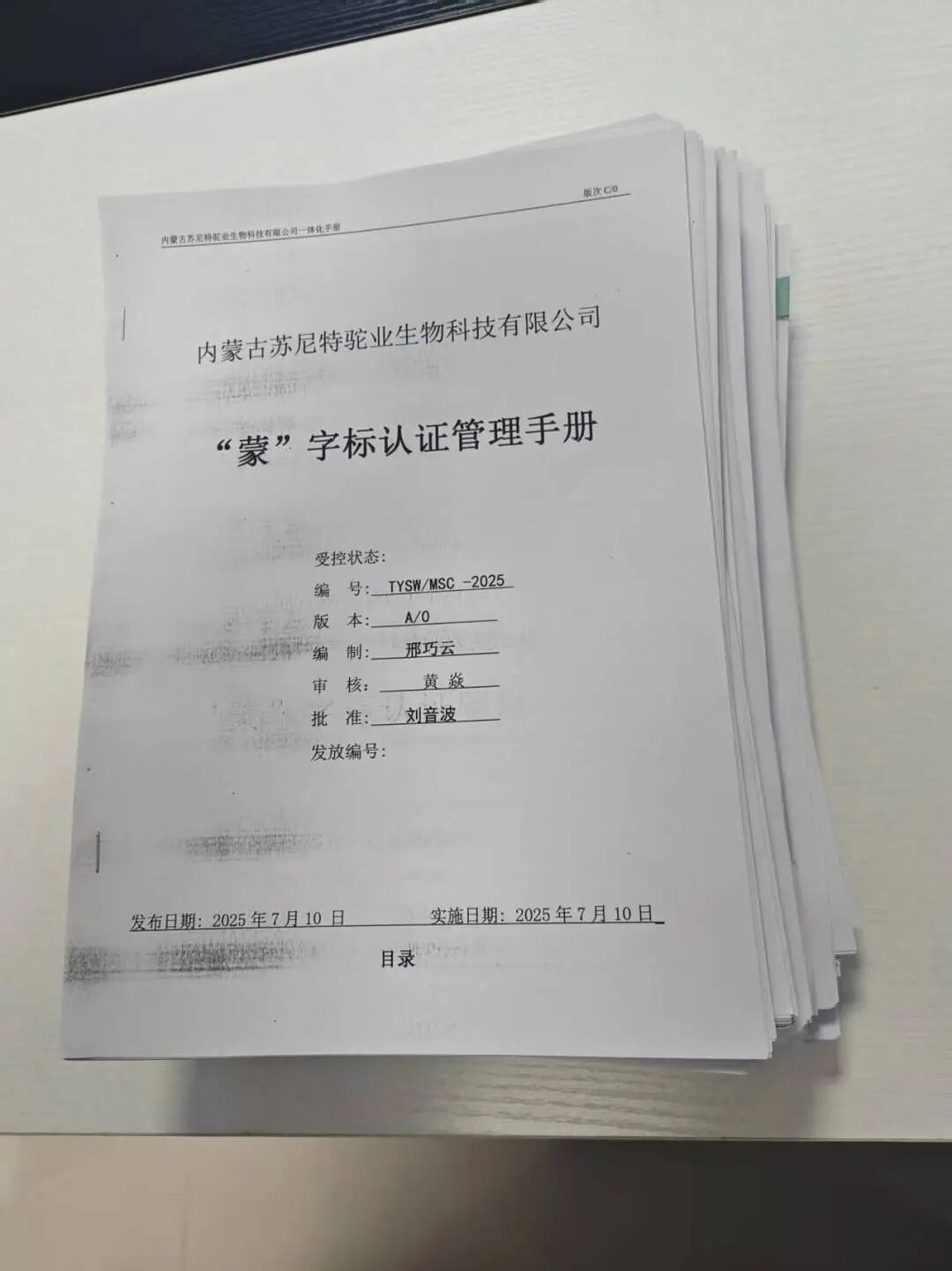 自申报启动,企业成立专项小组,完善质量管控与追溯体系。2025年12月15日,自治区“蒙”字标专班完成现场认证,企业又经多轮查验终获认证。期间,苏尼特右旗市场监管局主动靠前服务,开展“一对一”政策宣贯与技术指导,精准解读认证流程及标准要求,协助企业破解申报过程中的难点问题,为认证工作顺利推进提供了坚实保障。